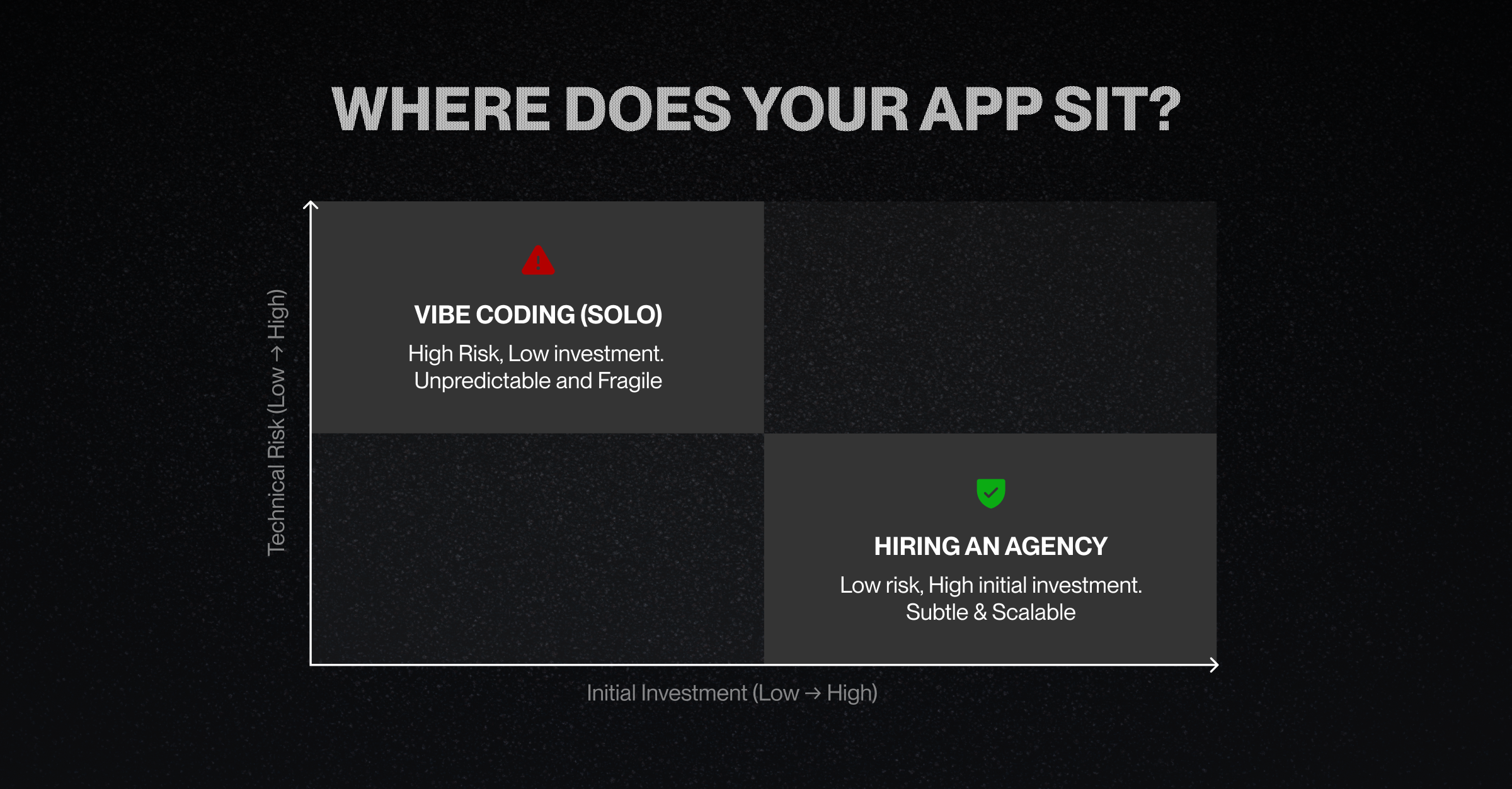 That being said, for founders who want to minimize their initial investment without being exposed to the catastrophic risks of unmanaged development, Professional Vibe Coding is the ideal middle ground. This approach allows you to move with the speed of AI while maintaining the safety net of human expertise.